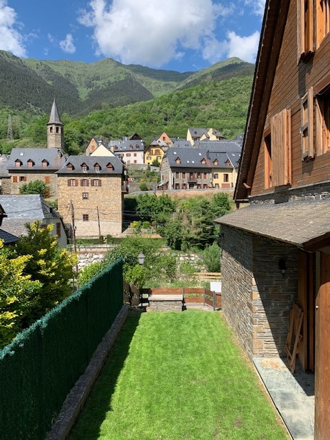 Ven a disfrutar y a relajarte en mi acogedor ático dúplex con vistas a Vielha y a sus espectaculares montañas. Se ubica a 8 minutos de Vielha caminando y 2 minutos en coche, el ático no dispone de parking, aunque en los alrededores es fácil aparcar gratuito. El apartamento es muy luminoso, dispone de dos habitaciones con baño completo cada una, cocina equipada, comedor con sofá-cama y chimenea de leña.Es una zona muy tranquila, ya que la casa solo se compone de dos pisos.Dispone de Wifi.