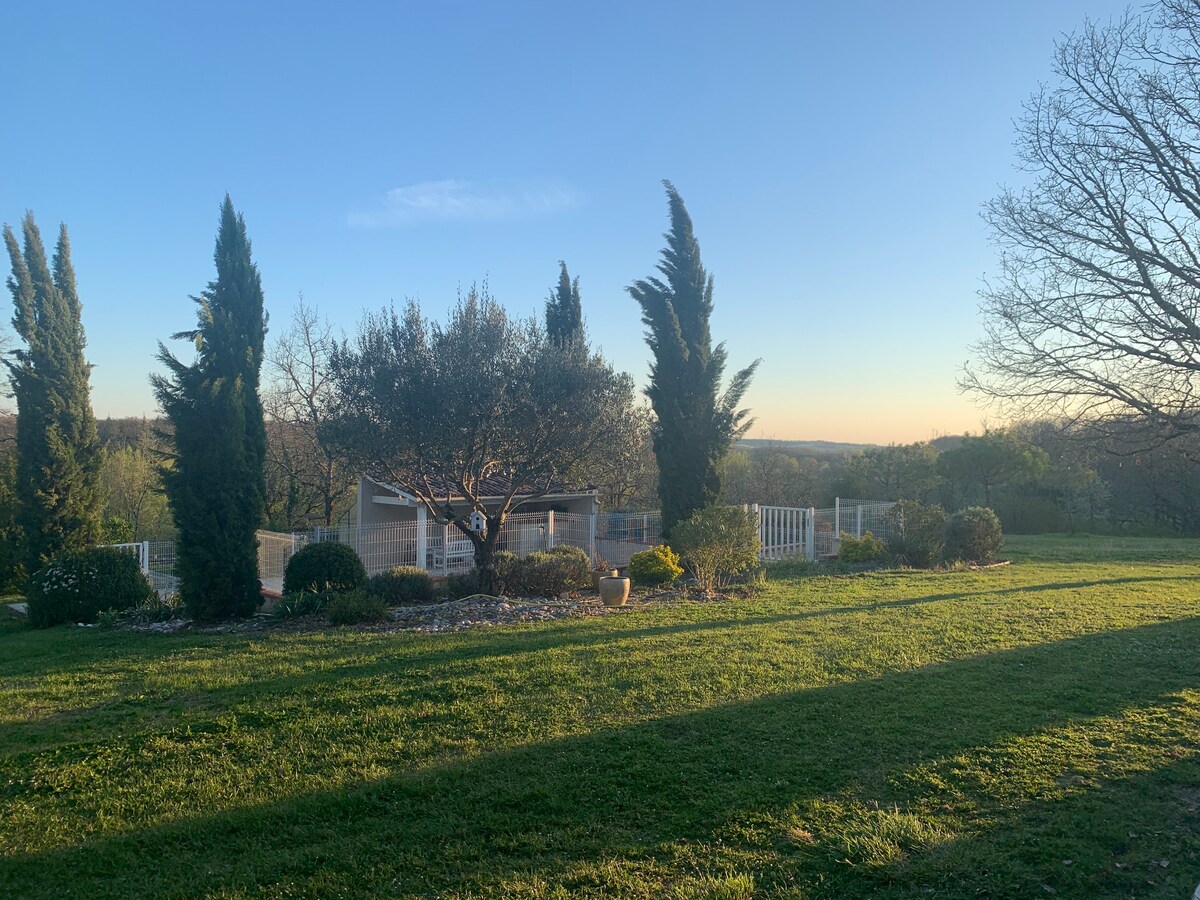 Nido con vistas a un mar de árboles. Antiguo horno de pan convertido en una casa luminosa al abrigo de las miradas, con un pequeño patio japonés en la entrada, un jardín en la parte trasera con vistas a un bosque, en el corazón de Quercy. Planta baja de piedra, piso de madera, estufa de leña (¡imprescindible en invierno!), rutas de senderismo de fácil acceso, numerosas actividades culturales y deportivas en la región. Ideal para los amantes de la naturaleza, los paseos y la tranquilidad.
