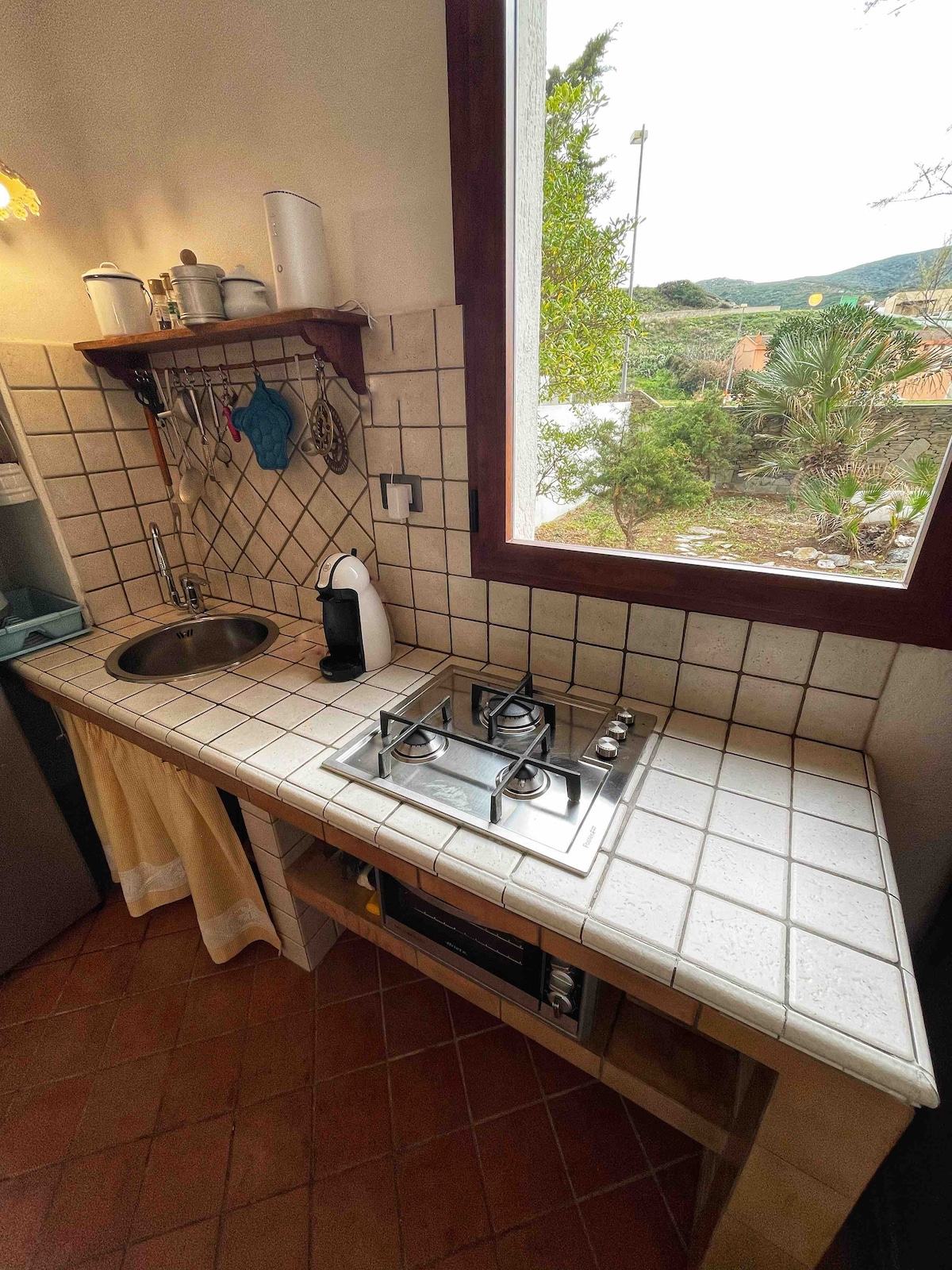 Nuevo apartamento con porche privado y una espléndida vista al jardín. Un dormitorio doble con armario, baño principal con ducha doble, aseo y una gran sala de estar con cocina americana. Mobiliario de diseño con algunos toques de muebles y artesanía sardos. La residencia está rodeada de vegetación a solo 10 minutos del centro de la ciudad, cerca de los principales servicios y playas, pero al mismo tiempo lejos del tráfico y el ruido.