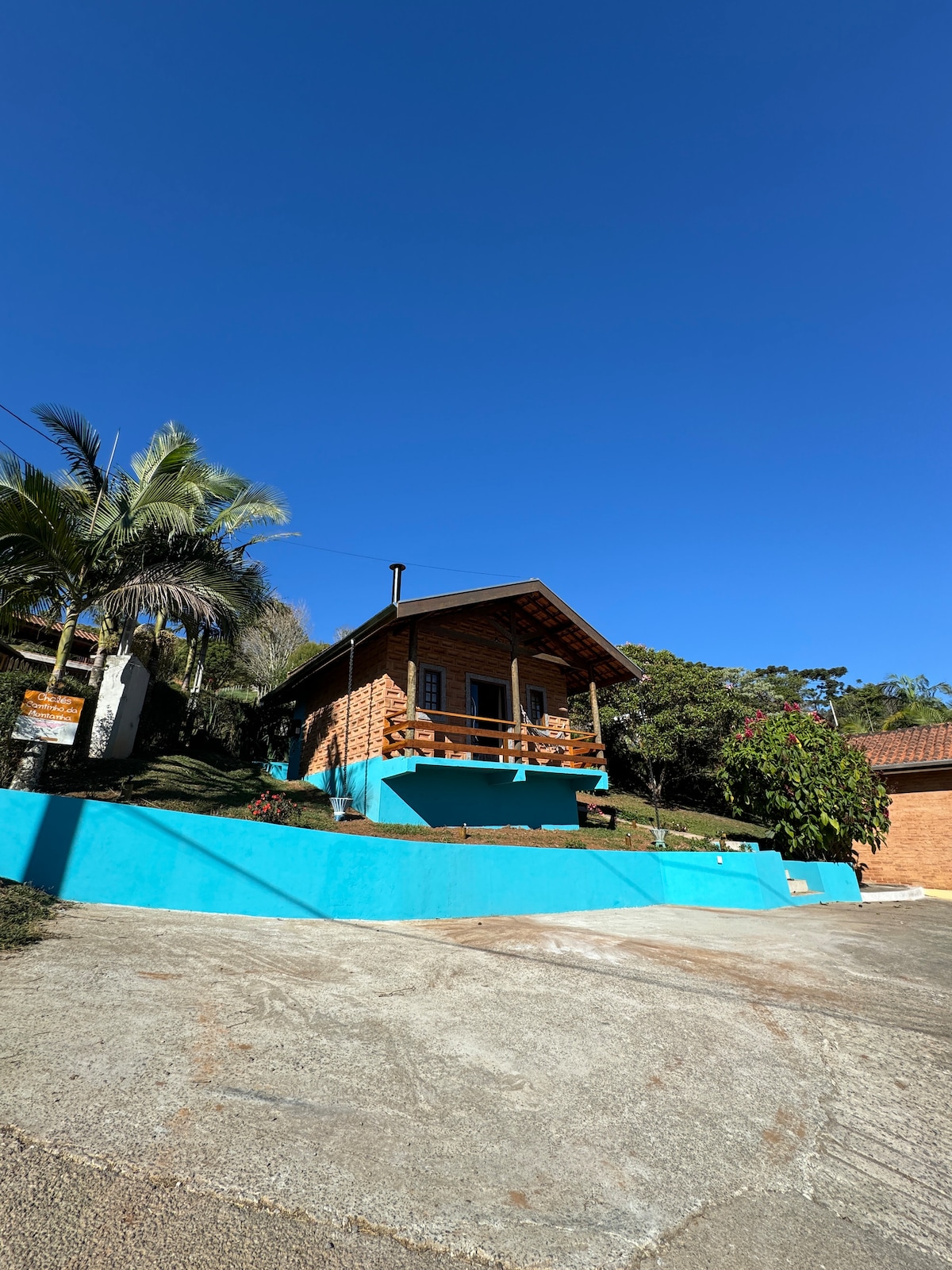 Estamos a 1 km del centro de la ciudad de Monteiro Lobato. El chalet está en la cima de la montaña, tiene una hermosa vista: se puede ver el pequeño pueblo y la naturaleza que lo rodea. Cuenta con chimenea, espacio de lectura, balcón, cocina privada. Ideal para parejas. En la granja donde se encuentra el chalet hay otras 2 casas en alquiler. Estamos en la zona rural, pero el acceso con cualquier coche popular es fácil, a 5 minutos de la ciudad y no hay camino de tierra.