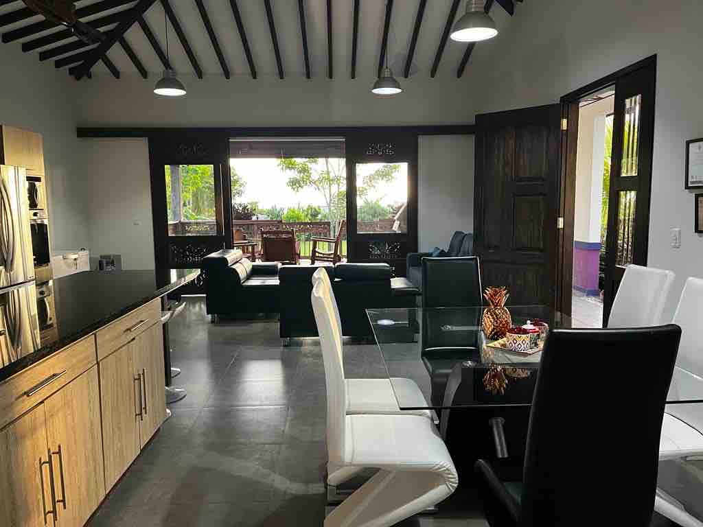 DISFRUTA CON TU FAMILIA Y AMIGOS DE LA CASA CAMPESTRE LA BENDITA UBICADA EN EL EJE CAFETERO. TIENE CAPACIDAD PARA 14 PERSONAS, 5 HABITACIONES (3 CON CAMA DOBLE Y 2 CON CAMAROTES), PISCINA PARA ADULTOS Y NIÑOS, BBQ, ZONAS, VERDES, CORREDORES, ZONA DE PARQUEO, COCINA BIEN DOTADA, DIRECTV. EN LA BENDITA PODRÁS DISFRUTAR DEL MEJOR CLIMA, UNA MARAVILLOSA VISTA Y LA TRANQUILIDAD QUE CARACTERIZA AL EJE CAFETERO. LA BENDITA ESTÁ MUY CERCA AL PARQUE DEL CAFÉ, LOS ARRIEROS, PANACA, FILANDIA, QUIMBAYA.
