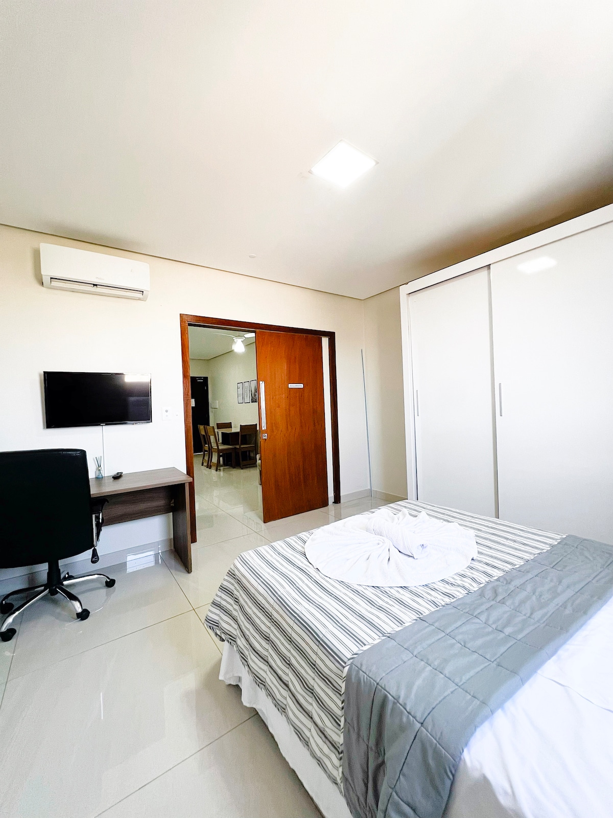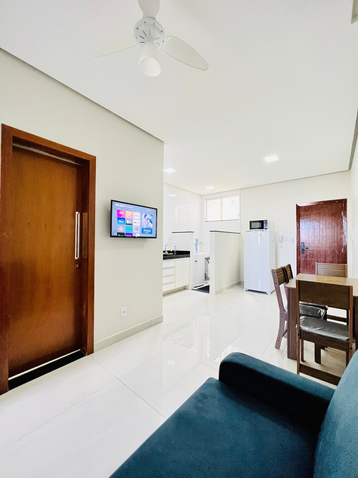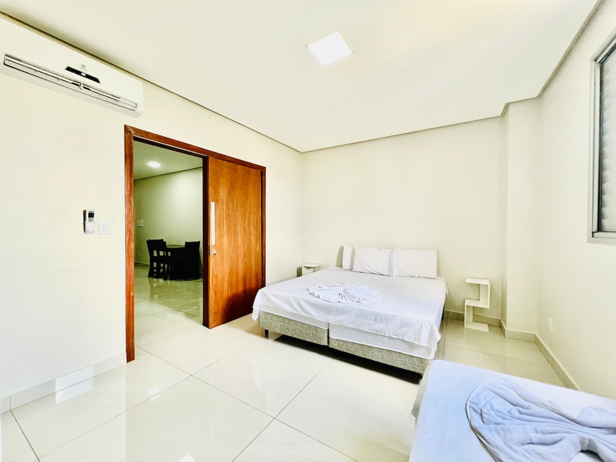 Flat para pessoas exigentes! porteiro 24hs Local extremamente seguro Vaga para 2 carros academia salão de jogos sauna 2 elevadores Mercado inteligente não interior do prédio com sistema de pegue e pague Bairro classe A,08 mi do centro Ambiente 100% climatizado Cama SUPER KING. Todos utensílios de cozinha para te proporcionar praticidade; tv smart sala e quarto Perto das principais faculdades Muito perto de padaria, farmácia restaurantes, muito perto shopping Ibituruna