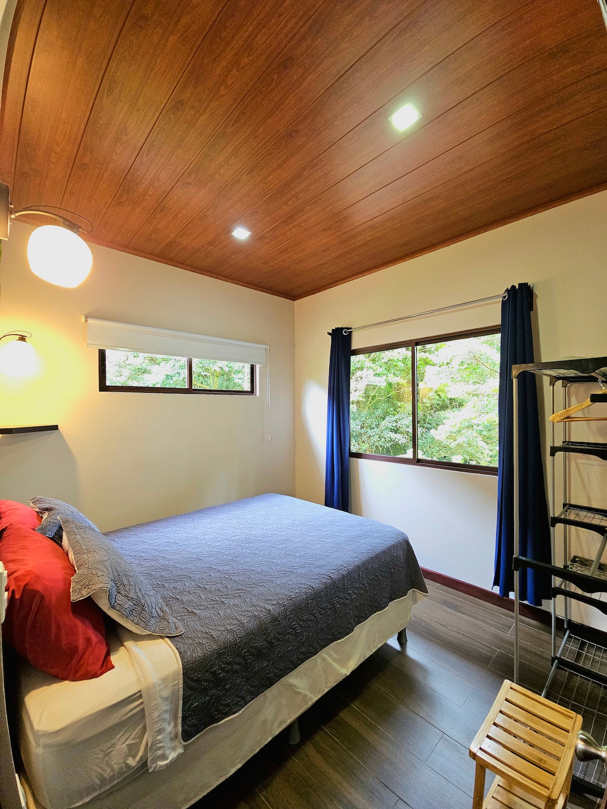 Bienvenido a nuestra joya de Monteverde recién construida, que ofrece unas vistas impresionantes del mar y las montañas. Esta acogedora y tranquila cabaña cuenta con dos dormitorios, una cocina totalmente equipada, una cómoda sala de estar y un baño completo. Garantizamos tu seguridad, ofrecemos estacionamiento interno privado. Convenientemente ubicado, estamos a solo 5 minutos de un supermercado y una gasolinera, y a 10 minutos de restaurantes y tiendas locales. Experimenta la combinación perfecta de tranquilidad y accesibilidad en este encantador retiro.