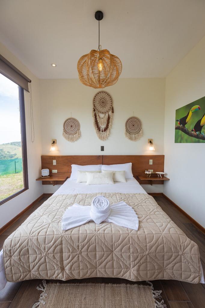 Tenemos una cabaña con balcón privado, con una inigualable vista a las montañas y el Golfo de Nicoya en el océano Pacífico. Se encuentra ubicada en la finca de café de Don William, puedes caminar por los senderos y explorar los alrededores. Es el lugar ideal para sumergirse en el mundo del café y aprender sobre la producción de este preciado grano.