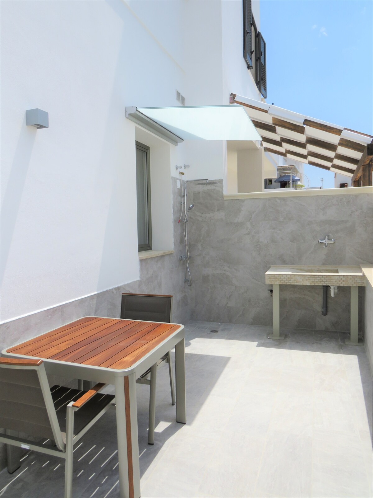 Situada en el interior de una villa, la Dépendance, totalmente independiente, consta de una habitación doble con baño y ducha, una amplia zona exterior de uso exclusivo, con cocina americana equipada y ducha exterior. Su ubicación es ideal para llegar, a pie o en bicicleta, a las hermosas bahías de la marina de Leporano: Porto Pirrone, Saturo y Gandoli. A solo 300 metros se encuentra la parada de autobús con salidas hacia Tarento y otros destinos turísticos.