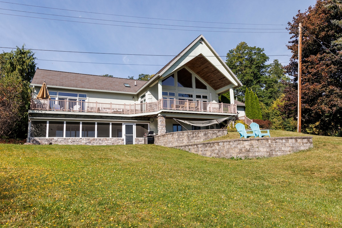 Encantadora casa de 4 dormitorios y 3,5 baños situada en la ruta del vino Keuka. Esta cómoda casa tiene capacidad para 8 personas y es del tamaño perfecto para pasar una semana o un fin de semana perfecto en el lago. Disfruta de las hermosas vistas al lago desde las muchas ventanas dentro de la casa y fuera en la terraza recién construida. Esta escapada de todo el año se encuentra a 75 pies de distancia a pie en el nivel del lago. «Due Time» es el hogar perfecto cerca de bodegas de primera categoría, restaurantes y todo lo que ofrece esta región. Estricta *política de no mascotas.