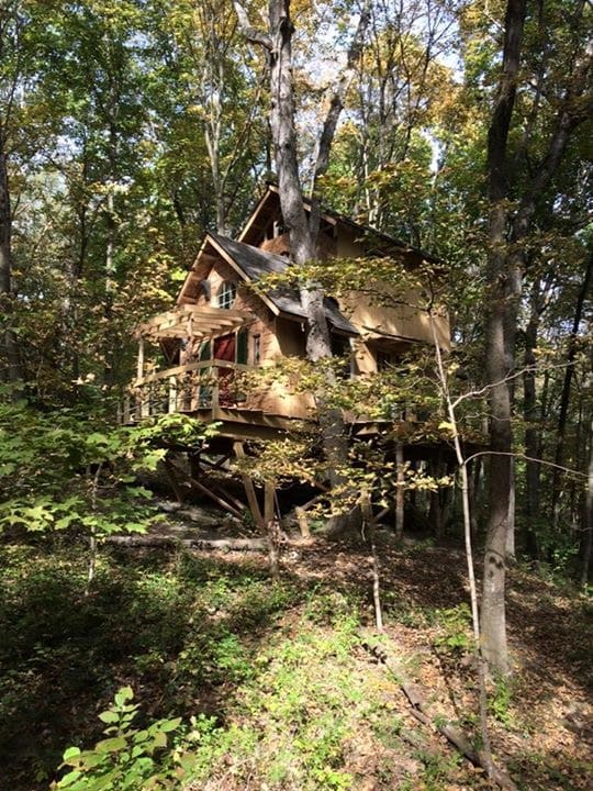 An off the grid whimsical gem in the Ten Acre Treehouse forest! "The Captains Quarters". This is the 2nd treehouse in rural Nauvoo. A lot of the same touches found in "The Whitetail". The first treehouse here, you will find in this nautical inspired creation. This treehouse is a full 2 story, 400 sq foot, and features second story bedroom, sleeper sofa on the first floor, small kitchen area with refrigerator/freezer, microwave, coffee maker, plates, silverware, cups and a sink!