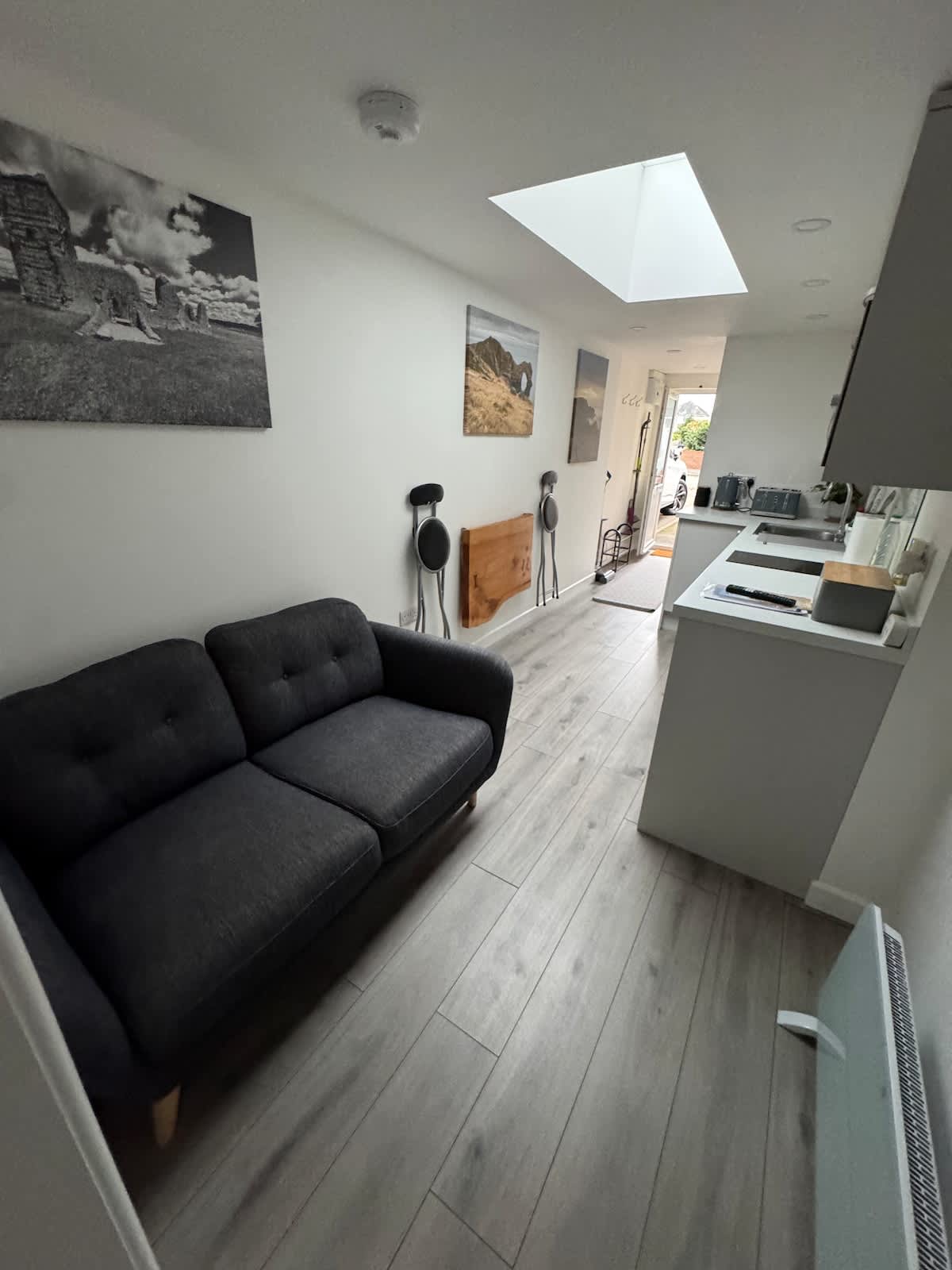 Estudio independiente construido con el propósito de alojar cómodamente a dos personas. Cocina moderna y baño con ducha de efecto lluvia. Mesa plegable y taburetes para comer, cocina totalmente equipada con microondas, vitrocerámica, horno y nevera con congelador. Situado muy céntrico con una cooperativa al final de la carretera con una parada de autobús que va directo al centro de la ciudad, perfectas conexiones de transporte, junto a la zona de brezales y bosques, mucho aparcamiento y espacio. Nueva pintura y renovación a partir de diciembre de 2024.