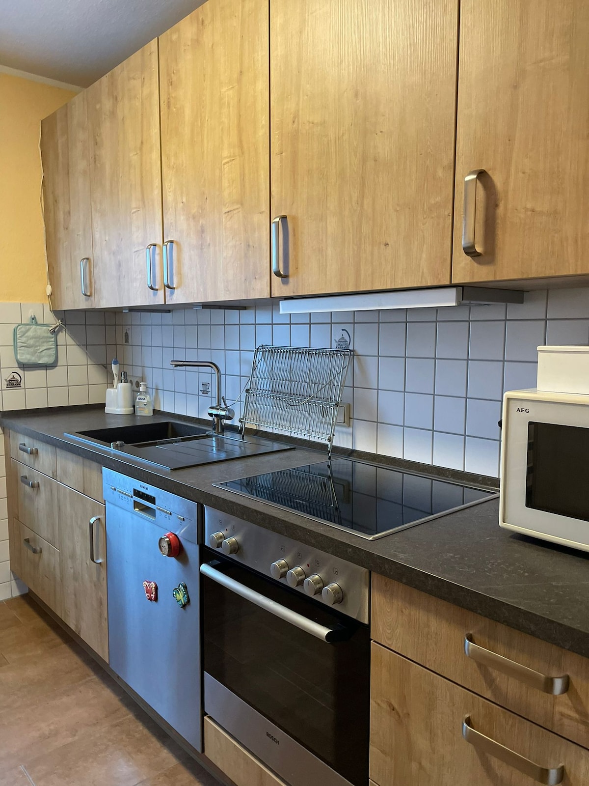 Llegar y sentirse bien. El aire fresco del mar del Norte, que está a pocos kilómetros de distancia, le dará la bienvenida con una brisa. El nuevo apartamento de vacaciones de 80 metros cuadrados se encuentra en la primera planta de nuestra casa y está completamente a su disposición. Es acogedor y está amueblado con buen gusto. En nuestro jardín, que puede utilizar, también hay una parrilla y un gran brasero a su disposición. Las bicicletas se pueden aparcar de forma segura.