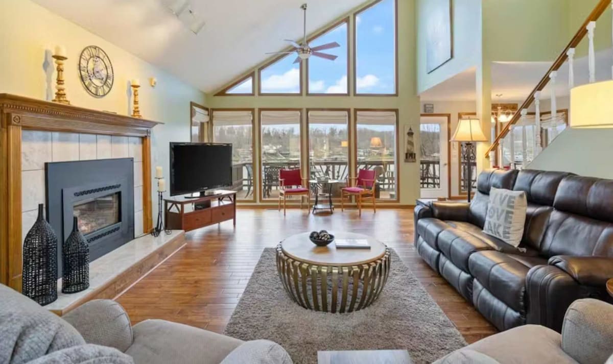 Time to relax at your own private Ozark Island Getaway condo! This newly remodeled 3-bedroom condo has a screened in patio with amazing main channel views, 4 beds (1 king, 3 queens), 2 full bathrooms, a full kitchen with all cooking utensils and coffee bar, a resort-style pool, and a 14' x 36' boat slip INCLUDED. Book your stay today and start planning your vacation! Ready for World Cup guests in 2026.