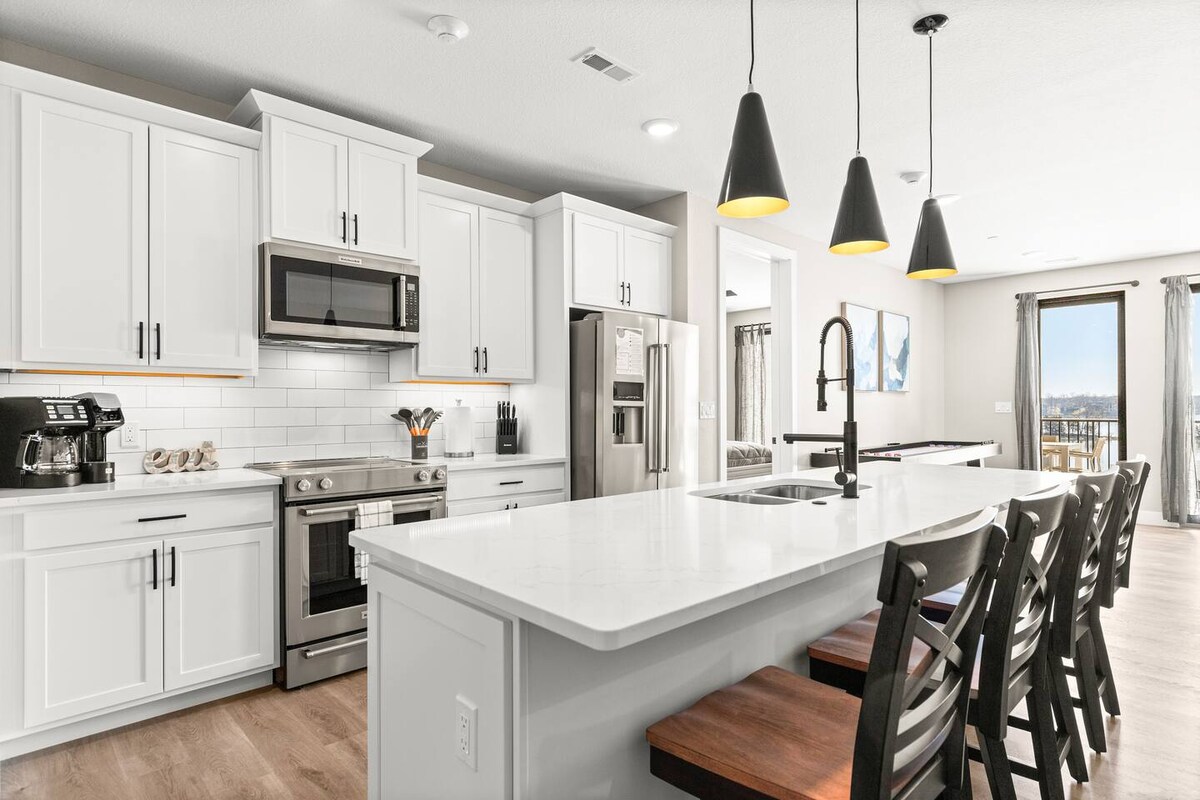 Relájate y disfruta de la brisa del lago en el balcón de este impresionante apartamento en Aqua Finn. Situado en el centro del lago, alrededor del hito de las 8 millas y a poca distancia a pie de Horny Toads, Lazy Gators y Shady Gators. Justo al lado de la autopista 54 y Bittersweet, pero lejos del bullicio. Cuenta con 2 piscinas con una gran terraza para barbacoas y tomar el sol directamente en el lago. 1500 pies cuadrados, 3 dormitorios, 2 baños con lavandería y hermosos techos abovedados. Relájate en la terraza con vistas a la piscina y al lago.
