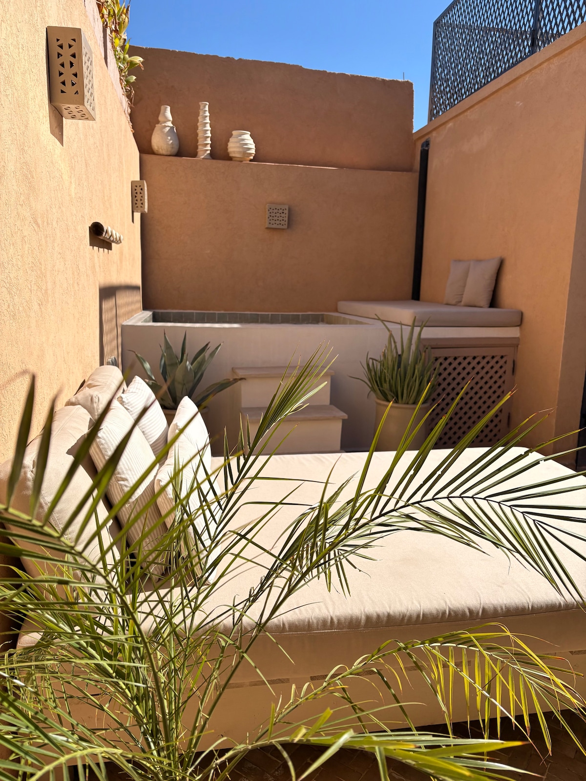 Unwind at our stylish private boutique riad (Riad Zayan) in the heart of the ancient medina of Marrakech. The central patio, in soft earthly colours, with its heated pool, is the perfect spot to relax after shopping in the famous souks or exploring the nearby ancient monuments. The lush rooftop is perfect for sunbathing or spending the warm Marrakech evening. All rooms are carefully decorated, providing that luxury feels during your city trip to Marrakech.