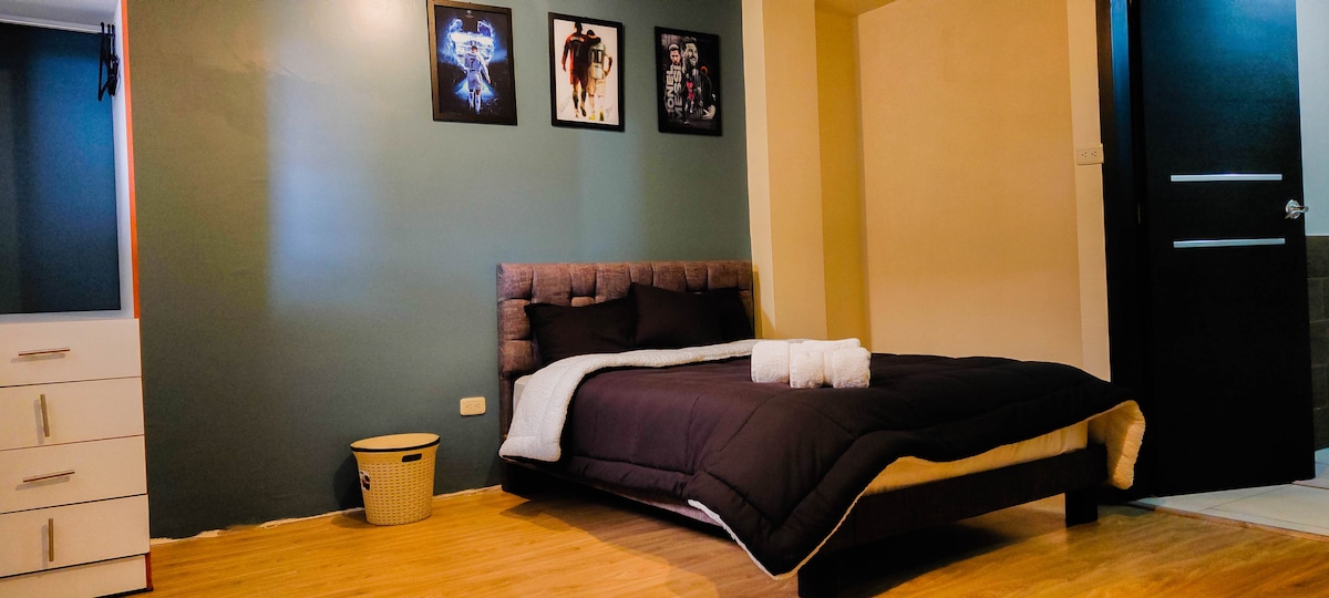 Departamento privado para ti y tus acompañantes. Ubicado a 5 minutos del centro de la ciudad caminando, nuevo y elegante este departamento está situado en una zona exclusiva y con varios restaurantes a su alrededor. Disfruta de WiFi, camas y colchones nuevos, agua caliente en toda la casa, televisiones con internet TVBox con más de 700 canales, ambiente familiar, edificio seguro, lavadora de ropa, cocina ollas utencillos de cocina, platos, vasos, cafetera, sistema de audio, parqueadero incluido