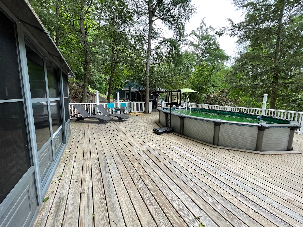 Retiro familiar frente al lago ~ Piscina privada ~ Sala de juegos