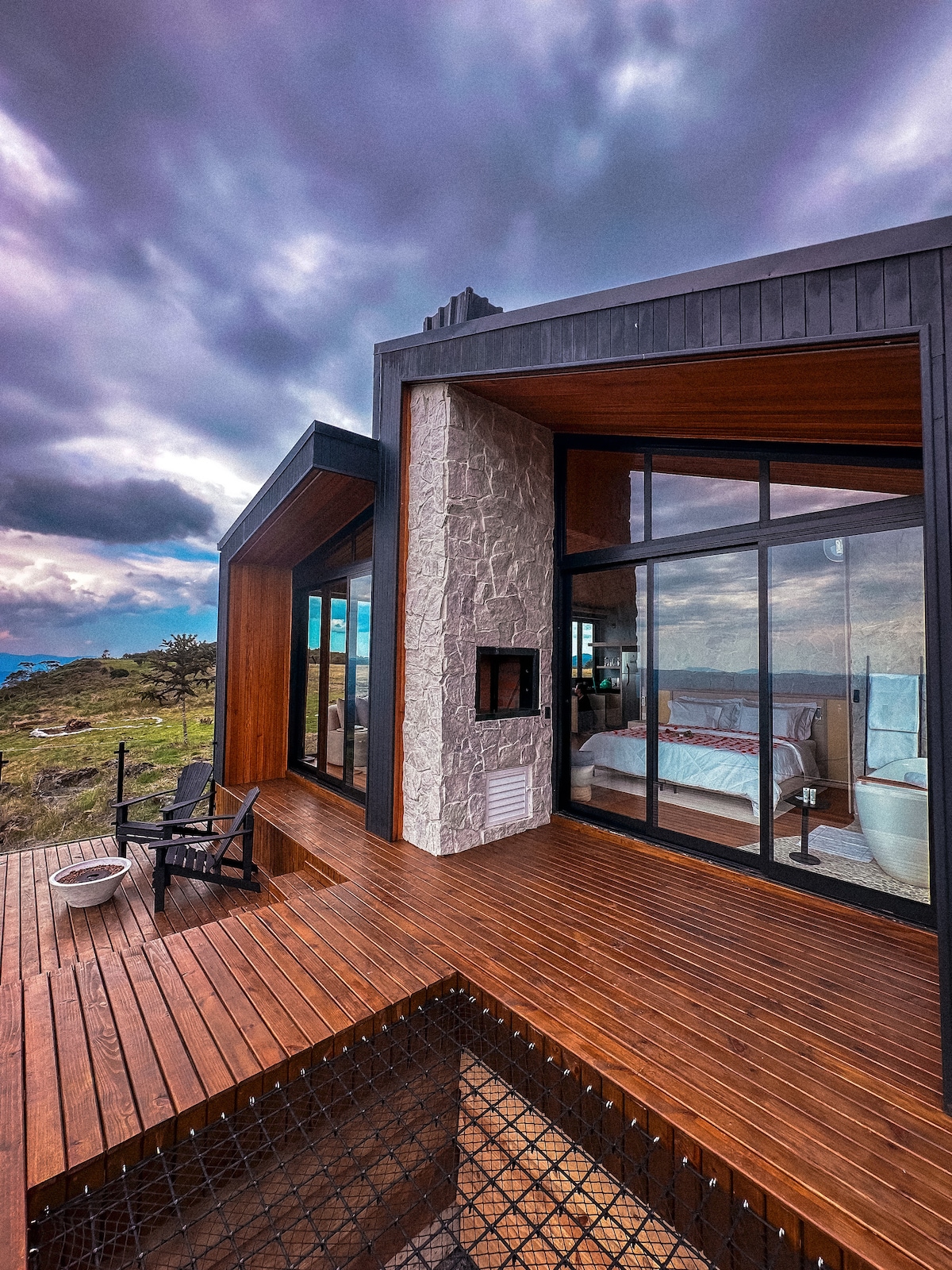 Altaneiro es una cabaña exclusiva en Urubici, ubicada en uno de los puntos más altos de la ciudad, con una vista abierta de las montañas y un clima ideal para relajarse. Creada para parejas que buscan privacidad, comodidad y conexión, la experiencia va más allá de hospedar. Bañera con vistas, cama de masaje tamaño king, calentador digital, aire caliente/frío, barbacoa, cocina equipada, Starlink y llegada autónoma. Aquí, el silencio, el paisaje y cada detalle te invitan a vivir días especiales.
