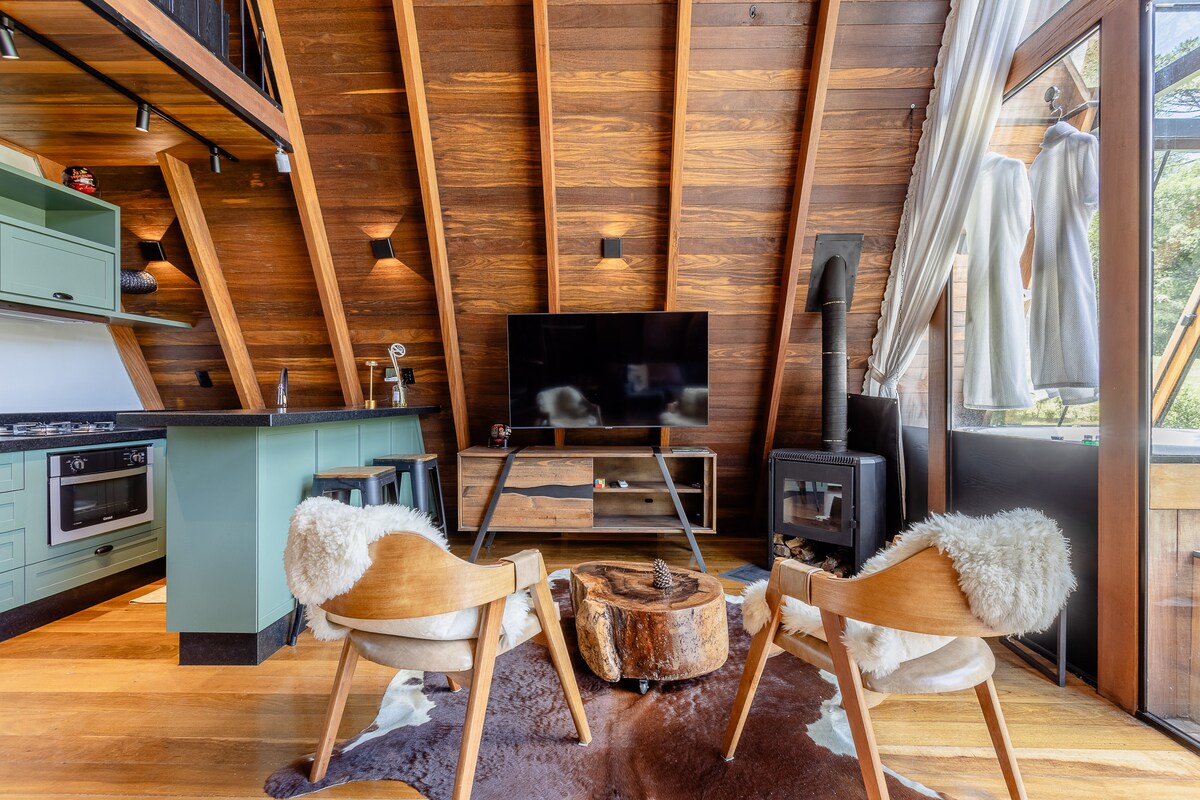 Nuestra cabaña es ideal para personas que buscan una estadía tranquila, acogedora y confortable. El entorno integrado ofrece refinamiento, practicidad y conexión con la naturaleza. Al entrar, serás recibido por un ambiente acogedor, con detalles cuidadosamente planificados. Con el frío característico de la región, el suelo radiante de la cabaña garantiza el confort térmico en todo el ambiente. Las grandes ventanas de cristal ofrecen impresionantes vistas de la naturaleza circundante, inundando el espacio de luz natural.
