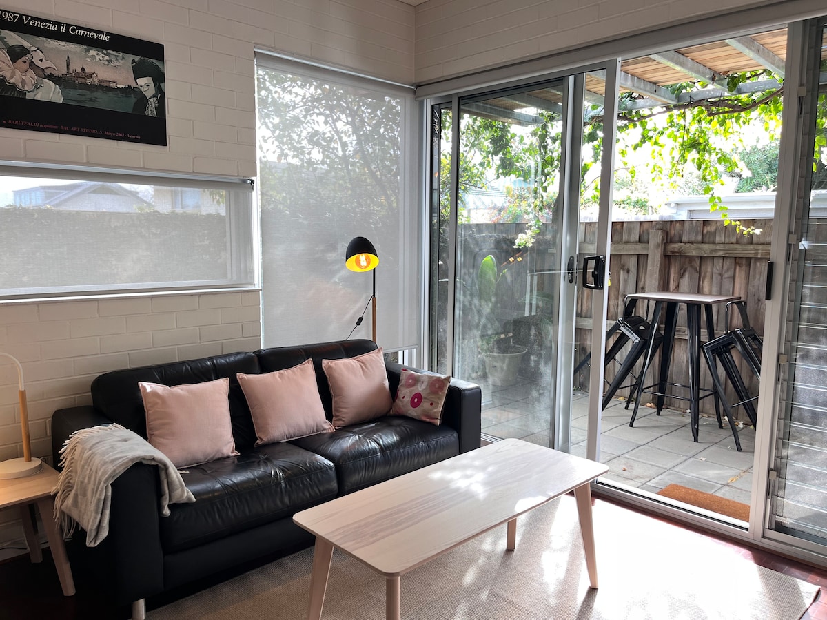 Apartamento privado contemporáneo, bellamente decorado, situado frente a una tranquila propiedad de Cottesloe. Tu propia entrada y sin instalaciones compartidas. A 10 minutos a pie de la playa de Cottesloe, la estación de tren y las tiendas locales. 1 dormitorio, cama tamaño king, TV inteligente, vestidor y baño privado. Cocina totalmente equipada separada y un salón/comedor, con un pequeño patio y barbacoa. Aire acondicionado de ciclo inverso en todo este espacioso apartamento. Ofrecemos tarifas de descuento semanales y mensuales. Estacionamiento gratuito para 1 auto.