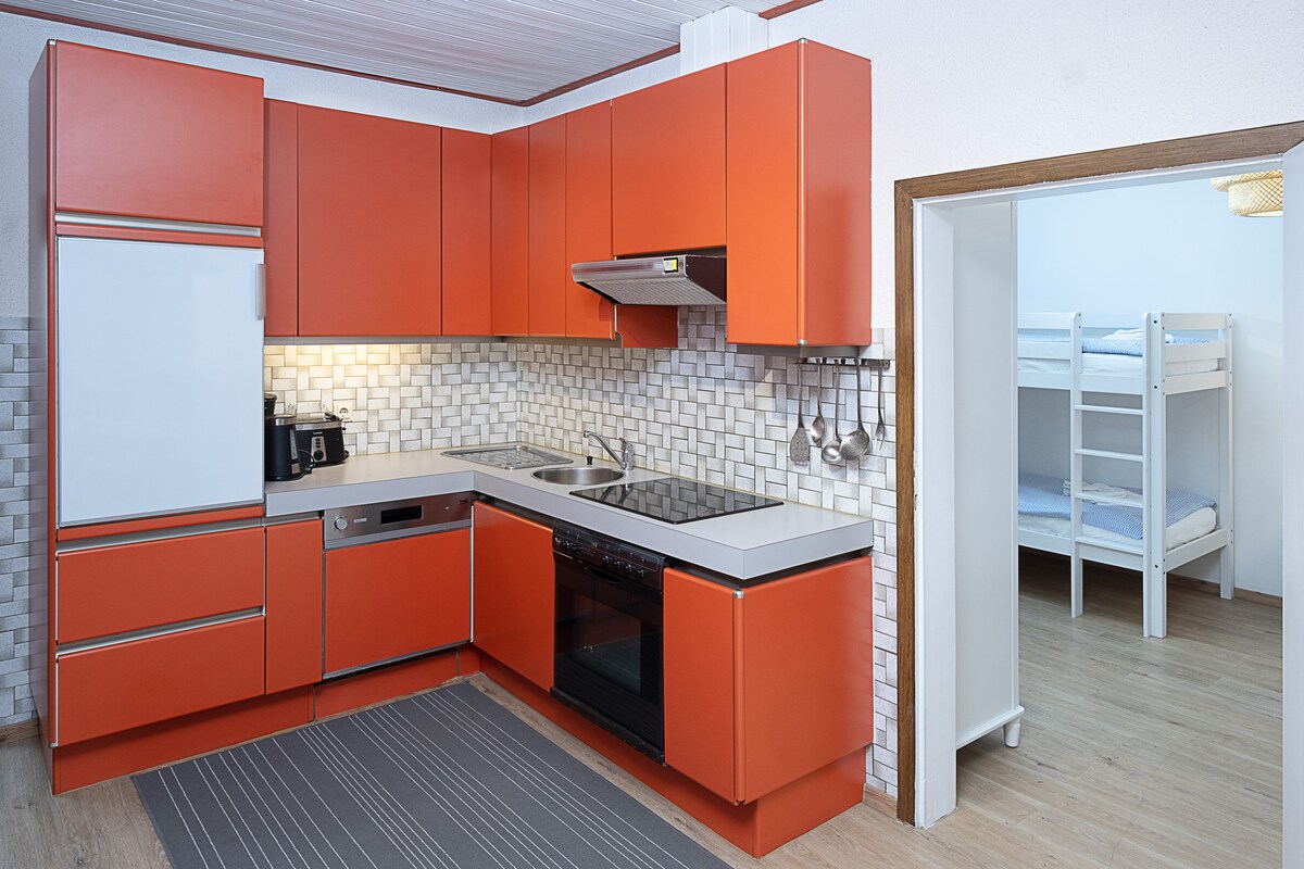 Este apartamento de 100m2 en el entresuelo le ofrece dos dormitorios (1 con una cama doble, 1 con una litera), un gran salón con un sofá cama doble, una gran cocina comedor con una estufa de pellets y acceso al jardín de invierno. También hay un baño con bañera, calefacción por suelo radiante y una lavadora y secadora. Por separado el inodoro.