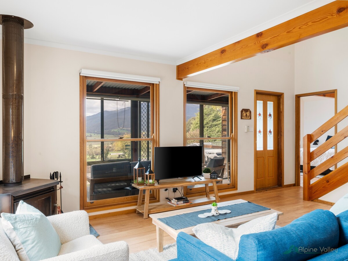 ¡Punto de carga EV disponible! Ligera y espaciosa, con un enfoque en la comodidad, esta cabaña original y bien diseñada de Mount Beauty está idealmente ubicada para que te relajes y disfrutes de esta hermosa zona. Hemos tratado de hacer un hogar lejos de casa para que lo disfrutes. La casa no es nueva y angular, sino más antigua, madura, suavizada y reconfortante. Si buscas relajación a la antigua con camas cómodas, rincones soleados, alfombras, libros para leer y DVD para ver, esto podría ser para ti.