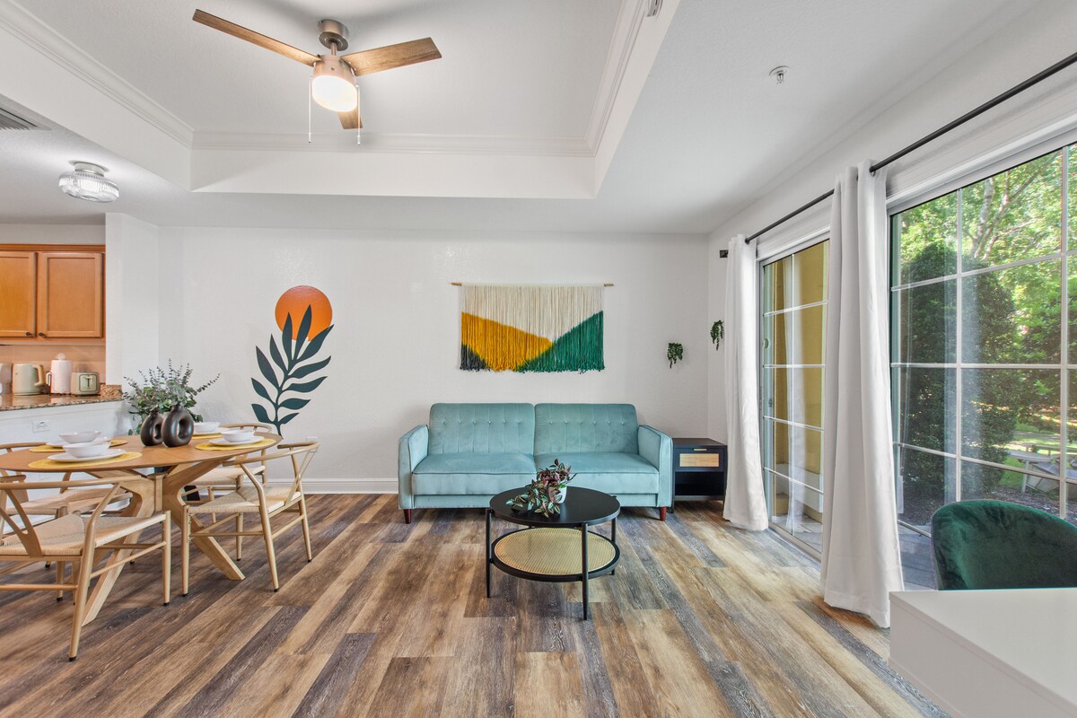 Discover Orlando's charm at our resort-style oasis in a gated community with lots of amenities! Nestled near Disney, this modern haven features 2 stunning pools for ultimate relaxation. Delight in nearby restaurants, perfect for foodies. Families will love the kid-friendly atmosphere, and fitness enthusiasts can stay active in the on-site gym. Our clean, contemporary design ensures a comfortable stay, making it an ideal choice for your Orlando getaway. Conveniently located on the first floor.
