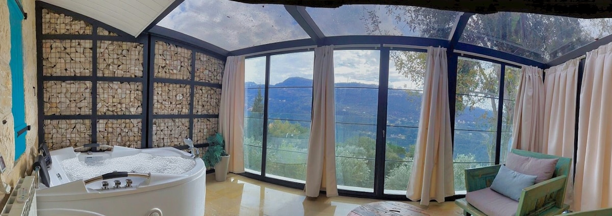 Acogedora casa del árbol hecha a mano para dos personas con vistas panorámicas, una bañera de hidromasaje climatizada al aire libre privada y un proyector inteligente con Netflix. Cuenta con una cama tamaño queen, baño completo, cocina pequeña, barbacoa, chimenea, hamaca, juegos de mesa y aire de montaña. Una de las tres unidades de casas del árbol Sevenoaks en el mismo terreno, perfecta para parejas o amigos que reservan juntos. Desayuno opcional, bandejas de vino/queso y entrega disponibles. Una estancia tranquila en el bosque, a solo 40 minutos de Beirut.