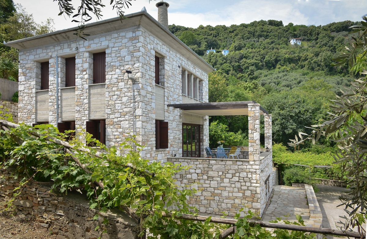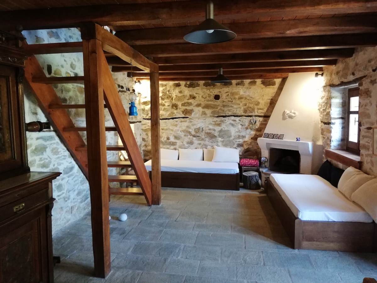 * New mattresses 2025! * Renovated old stone two-level house in a plot with astonishing view to aegean sea located in the highest part of the traditional village Zagora. Great choice for families, group of friends or couples seeking peacefulness and comfort for their vacation; either summer or winter.