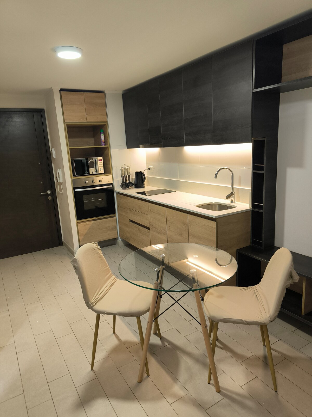 🧘‍♀️ Descansa en un espacio minimalista, sin ruido visual con estacionamiento gratis 🚗. Colores neutros 🎨, aromas relajantes 🌿 y limpieza sustentable 🌎. A 15 min caminando del 🎤 Movistar Arena y 🎢 Fantasilandia, a 800 m del 🚇 Metro Rondizzoni y a pasos del 🌳 Parque O’Higgins. Cuenta con cocina equipada, WiFi rápido ⚡, cama cómoda 🛏️ y un ambiente perfecto para relajarte. Ideal para conciertos, paseos o viajes de trabajo 💼. ¡Te esperamos! ✨