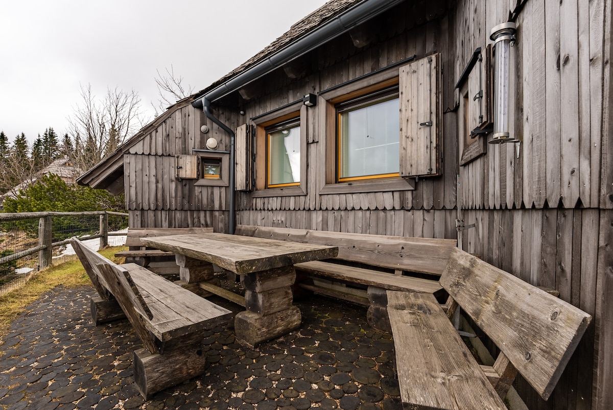 Despiértate en una cabaña construida con madera de nuestro bosque, en una ubicación idílica. Por la mañana, desde tu cama caliente, puedes mirar a través del cristal panorámico y admirar la magnífica vista de los Alpes de Kamnik-Savinja. En la cabaña hay una cama doble con una cama extra extraíble, una pequeña cocina con nevera y una terraza al aire libre con tumbona. Cada cabaña tiene su propio baño en las inmediaciones (15-30 m).