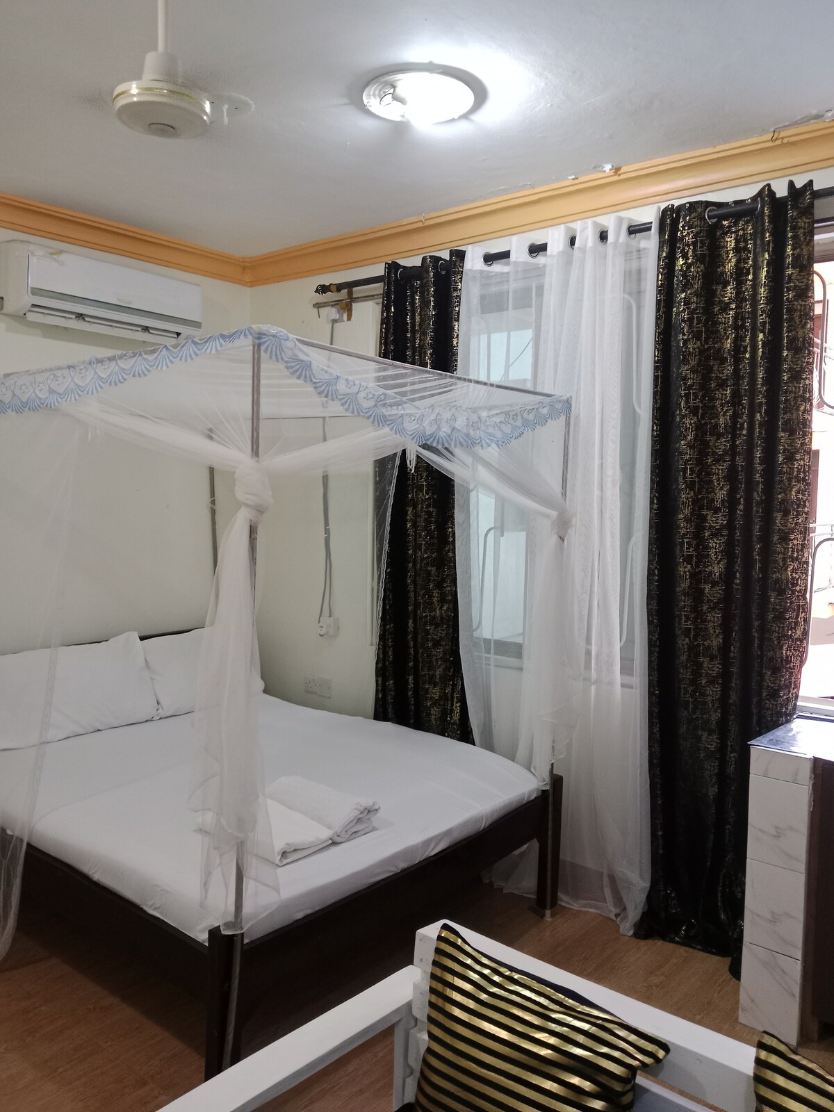 Our 1-bedroom apartment is located in Shanzu opposite the world renowned Serena Beach Hotel &Pride Inn Paradise Hotel. Easy 5 mins walk to the beach & both hotels. 20 minutes away from the main shopping center Nyali city mall, 10 mins away from world famous HALLER NATURE PARK, managed by SUPERHOSTS, ideal for BUSINESS/ HOLIDAY travelers. Located in a SAFE gated community, SELF-CHECK IN, WIFI, comfortable mattress, kitchen, airy living room, private bathroom,