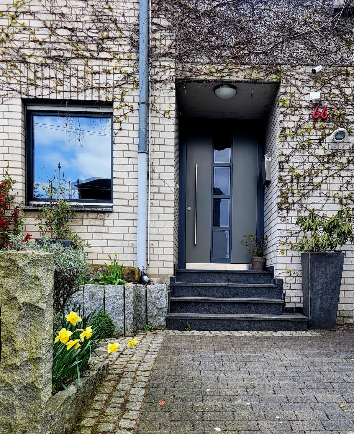 El moderno apartamento (46 metros cuadrados) está muy bien situado en la naturaleza y te invita a sentirte bien. Con entrada independiente y aparcamiento, encontrarás la paz y la tranquilidad en un ambiente luminoso y silencioso. Una terraza, un invernadero y una sauna (se puede reservar por separado) también forman parte del apartamento amueblado con cariño. Las tiendas y restaurantes están a solo 5-10 minutos en coche, el centro de Colonia se encuentra a 30 minutos en coche.
