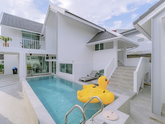 This villa is located in the center of Chiang Mai, within a ten-minute walk of 711 convenience stores, various restaurants, massage shops, snack bars and other shops. The villa is quiet, with many plants, an outdoor smoking area and a leisure pavilion, and the swimming pool has a circulating filtration and disinfection system. The villa has a housekeeper who cleans the house every day to keep it clean and tidy. We will do our best to help you with any needs and look forward to your visit.