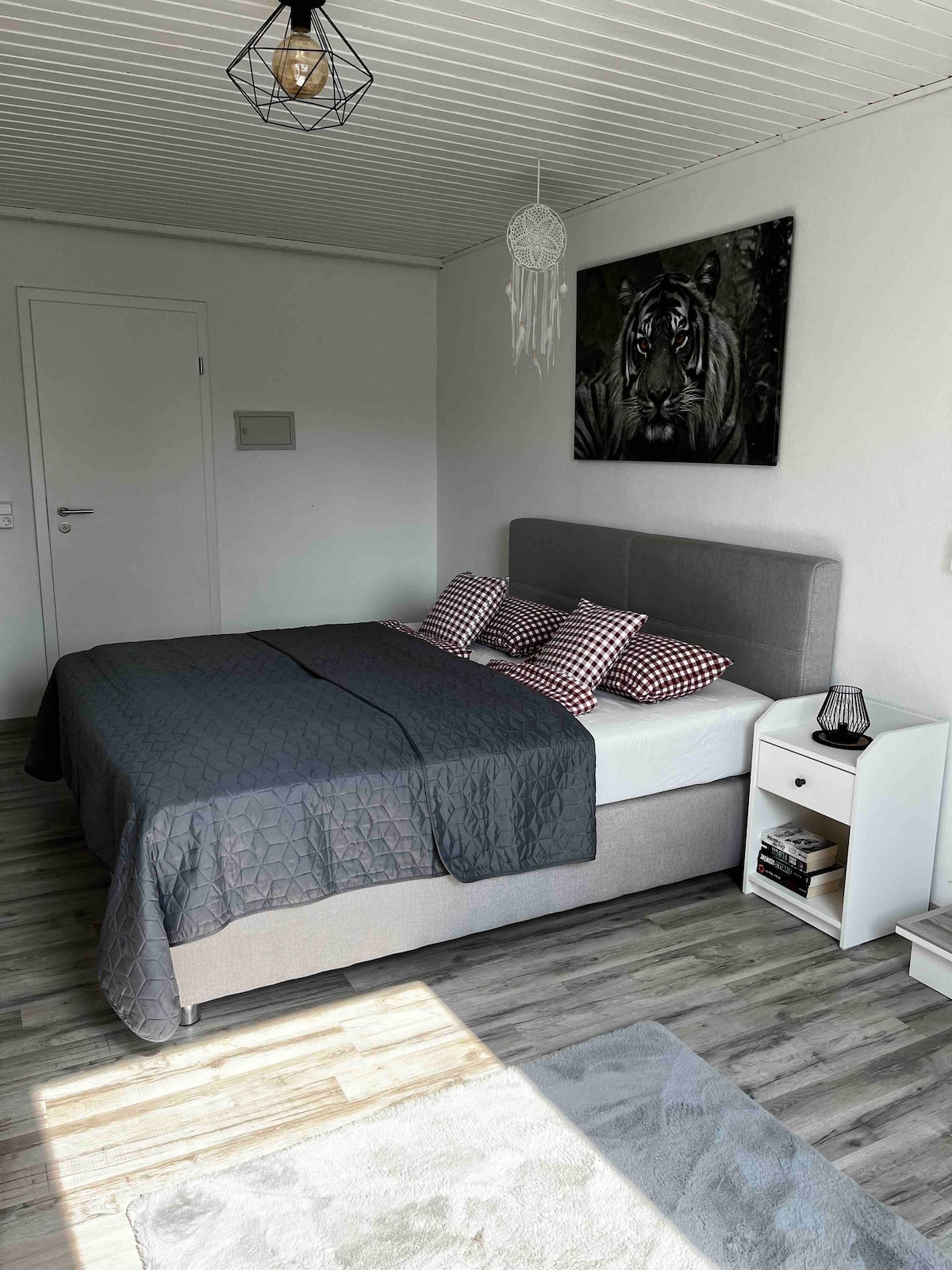 Wellcome en nuestro moderno apartamento amueblado DG con preciosas vistas al Hegauberge. Te espera un departamento de aproximadamente 80 metros cuadrados y luminoso: con cocina equipada (incluye lavavajillas, estufa eléctrica con horno, nevera/congelador y cafetera); amplia sala de estar con TV y comedor y un balcón cubierto; amplio dormitorio con cama doble y cama individual (si es necesario también una cuna para bebés); Baño pequeño con ducha e inodoro.