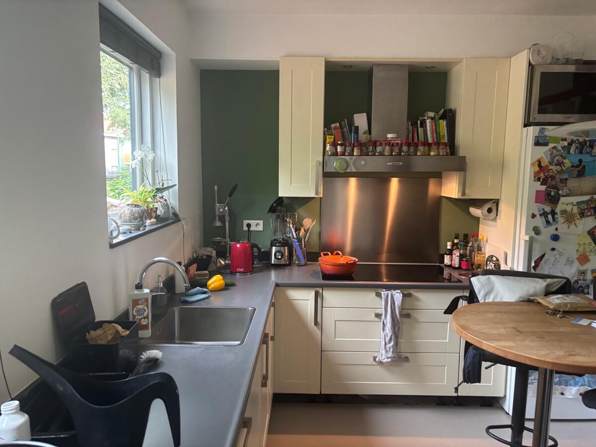 Este hermoso estudio con vistas al jardín en una casa familiar es un lugar tranquilo a solo 15 minutos del bullicioso centro de la ciudad. La entrada a la casa es común, vivimos en los pisos superiores, pero el estudio tiene su propia entrada desde el pasillo y tiene acceso privado al jardín con vistas y entrada a un canal. El estudio cuenta con una cocina con utensilios básicos de cocina (microondas, fogones, sartenes, cafetera, etc.), ducha, inodoro y zona de estar para que tu estancia sea lo más cómoda posible.