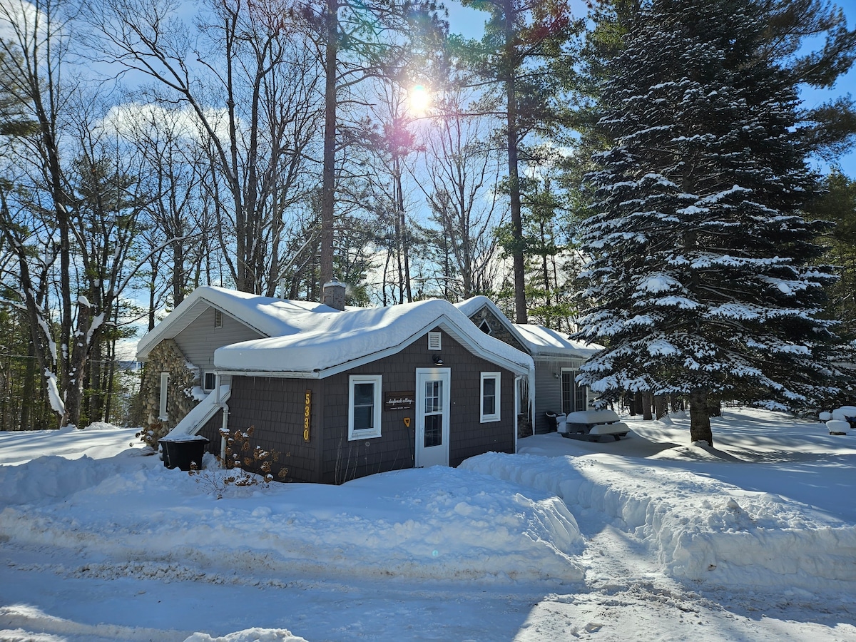 Acabamos de añadir una sauna al aire libre a esta fabulosa cabaña en el bosque detrás de nuestra casa. Aunque solo hay 1 dormitorio propiamente dicho, hay un loft para dormir con una cama tamaño queen y una ventana con vistas al bosque de maderas duras. También contamos con un sofá cama. Los huéspedes tienen total privacidad y todo lo necesario para una estancia cómoda. Esta es una cabaña pensada para la relajación tranquila... sin fiestas ruidosas ni nada de esa naturaleza. Ven y disfruta de la belleza del norte de Míchigan en todas las estaciones.