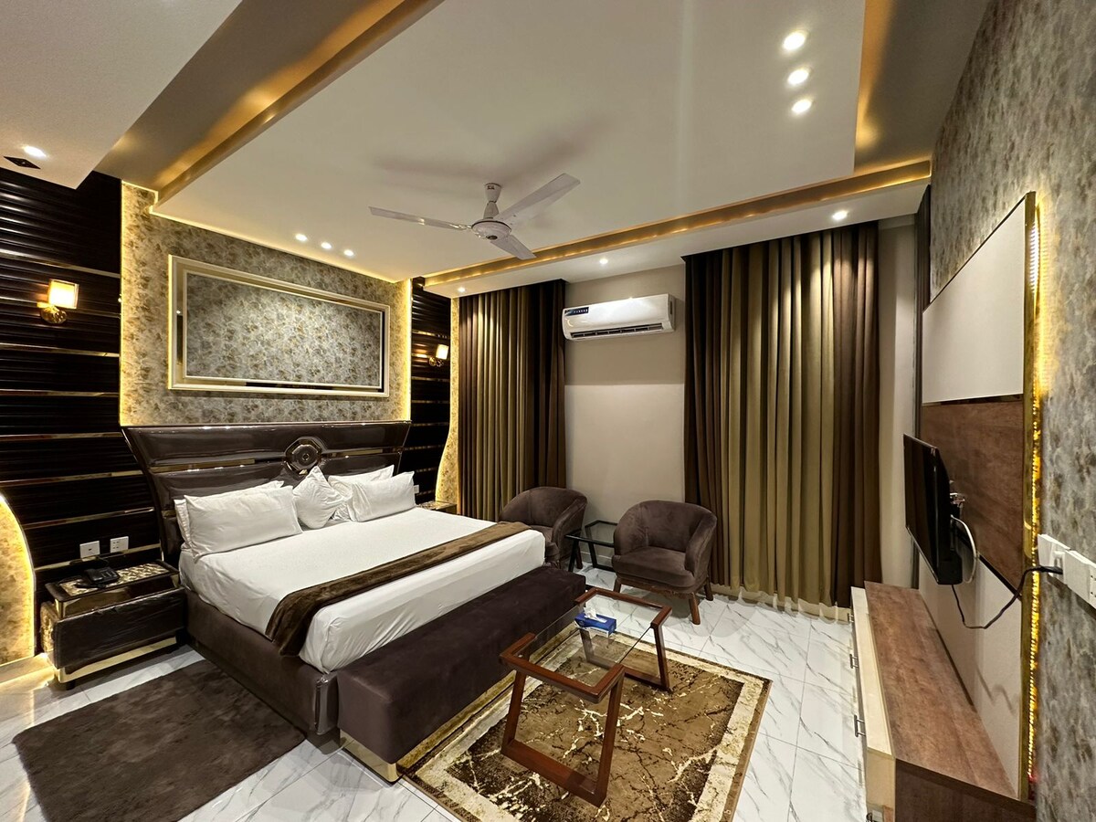 El Grand Luxury Hotel en Multan te da una cálida bienvenida en nuestra habitación triple ejecutiva. Disfruta de una estancia de lujo con excelentes comodidades, como wifi gratuito, TV por cable y aire acondicionado. Nuestra habitación de hotel es el lugar ideal para tu visita a Multan, con fácil acceso a restaurantes, tiendas y transporte público.