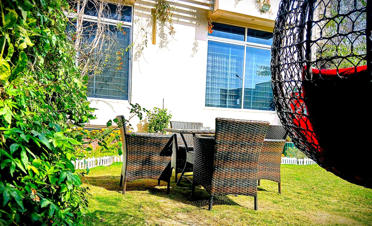 Si buscas una estancia de lujo en el corazón de Islamabad más cercana a la naturaleza, este es el lugar ideal para ti. Una residencia panorámica en la azotea dentro de una elegante casa inteligente habilitada para Alexa, con iluminación y comodidad controladas por voz. Espacio totalmente privado con entrada privada, una enorme terraza, cocina, baño, sala de estar, un televisor inteligente de 55 pulgadas, aire acondicionado con inversor de calor y frío, wifi de alta velocidad ininterrumpido, Netflix y XBOX-360 con más de 30 juegos. Desayuno, jacuzzi (en verano) y Suana están disponibles por un costo adicional.