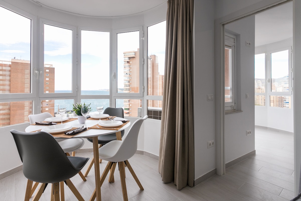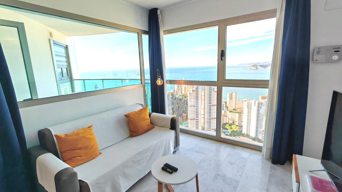 Apartamento de lujo muy luminoso y recién reformado con excepcionales vistas al mar. Totalmente amueblado y con todo lo necesario para una estancia inolvidable. En la zona más recomendada para alojarse en Benidorm, a 8 minutos andando de la playa de Levante. Consta de dos dormitorios dobles, dos baños, cocina independiente y un salón comedor con terraza integrada y amplios ventanales con vistas al mar. Wifi alta velocidad gratuito. Parking privado subterráneo y zona de piscinas comunitarias.