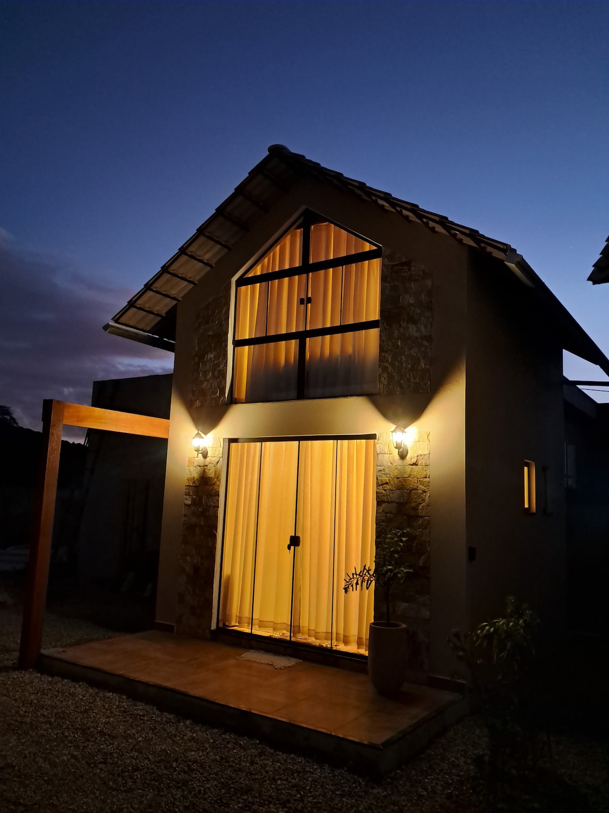 Encantador, cómodo y acogedor Chalet de 2 plantas, en madera y ladrillo, construido con mucho cariño para alojar familias, parejas y grupos. Cuenta con 2 habitaciones + 1 suite con 2 ambientes, sala de estar, cocina, baño social, balcón y zona de barbacoa con piscina. Todo ello con vistas a la magnífica Pedra Azul. Rodeado de mucho verde y naturaleza exuberante. Muy bien ubicado: en la famosa Ruta del Lagarto.