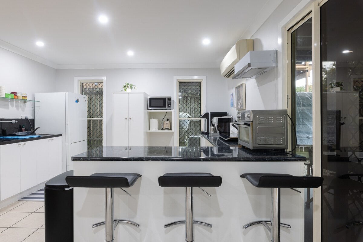 Mi pareja Mike y yo te invitamos a tomarte un descanso en este espacio cómodo y tranquilo, ya sea tomarse un tiempo para ti mismo, un lugar para llamar hogar mientras visitas a amigos y familiares o una estancia conveniente por trabajo. Tendrás acceso privado al apartamento que está adjunto, pero totalmente separado de nuestra casa. Accede a tu propio inodoro privado y baño, además de una cocina totalmente equipada. ¡Un pequeño espacio al aire libre genial para sentarse y disfrutar de tu té o café por la mañana! A 15 minutos del Aeropuerto de Brisbane
