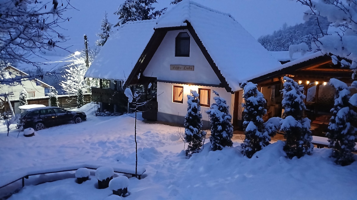 La "Casa de Pedro" se encuentra en el borde de un bonito pueblo pequeño, al borde de un bosque. La casa está construida alrededor de un fresno, una de sus características especiales. La casa dispone de Wi-Fi, chimenea, parrilla, tenis de mesa, futbolín, zona de juegos para niños, mascotas. Vistas a las montañas, al museo.