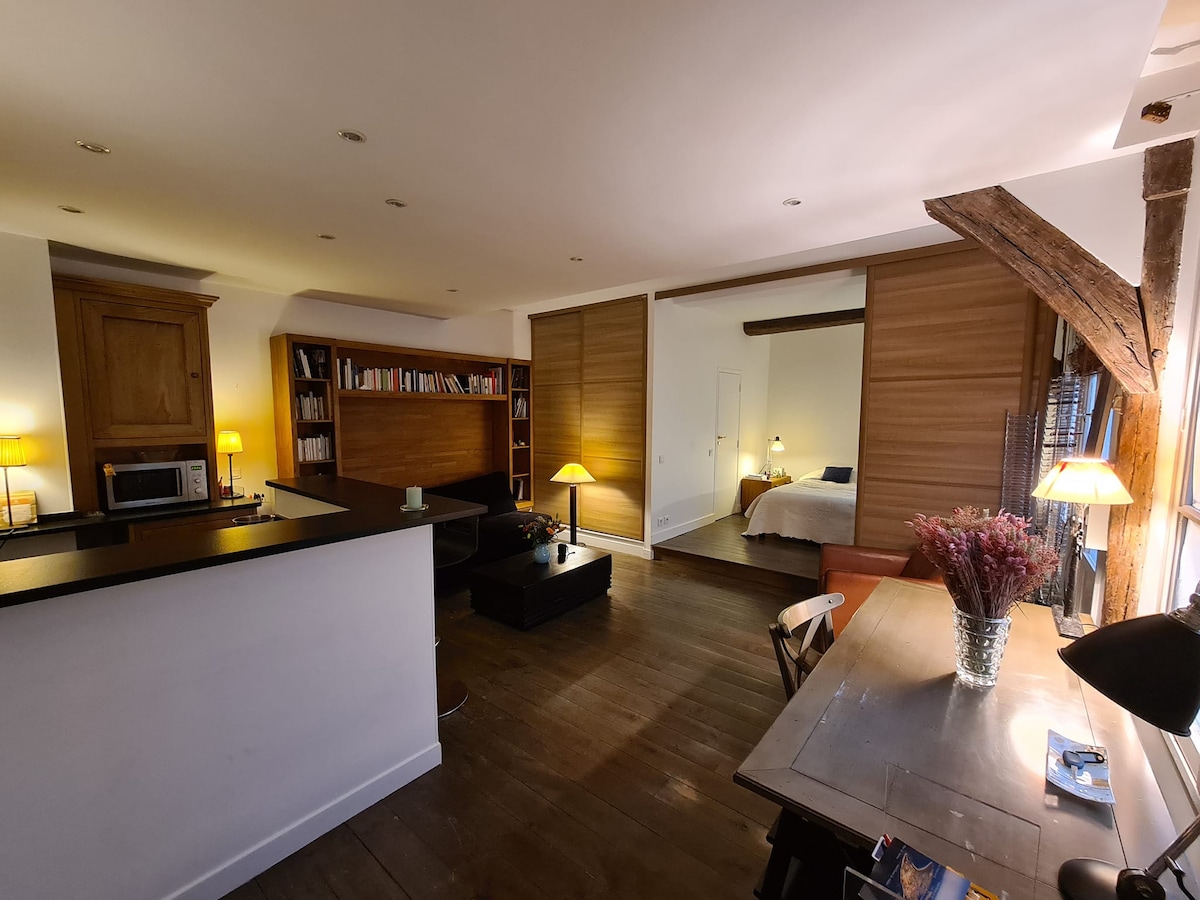 Parisian life in this beautiful architect's apartment with bohemian chic accents located in the heart of Paris in the historic Louvre district. Living postcard, the Louvre district offers many spectacular sightseeing opportunities, excellent restaurants and exciting entertainment venues. Ideal for a couple who wants to relax after a long day visiting Paris in a beautiful space with all the comforts of home!