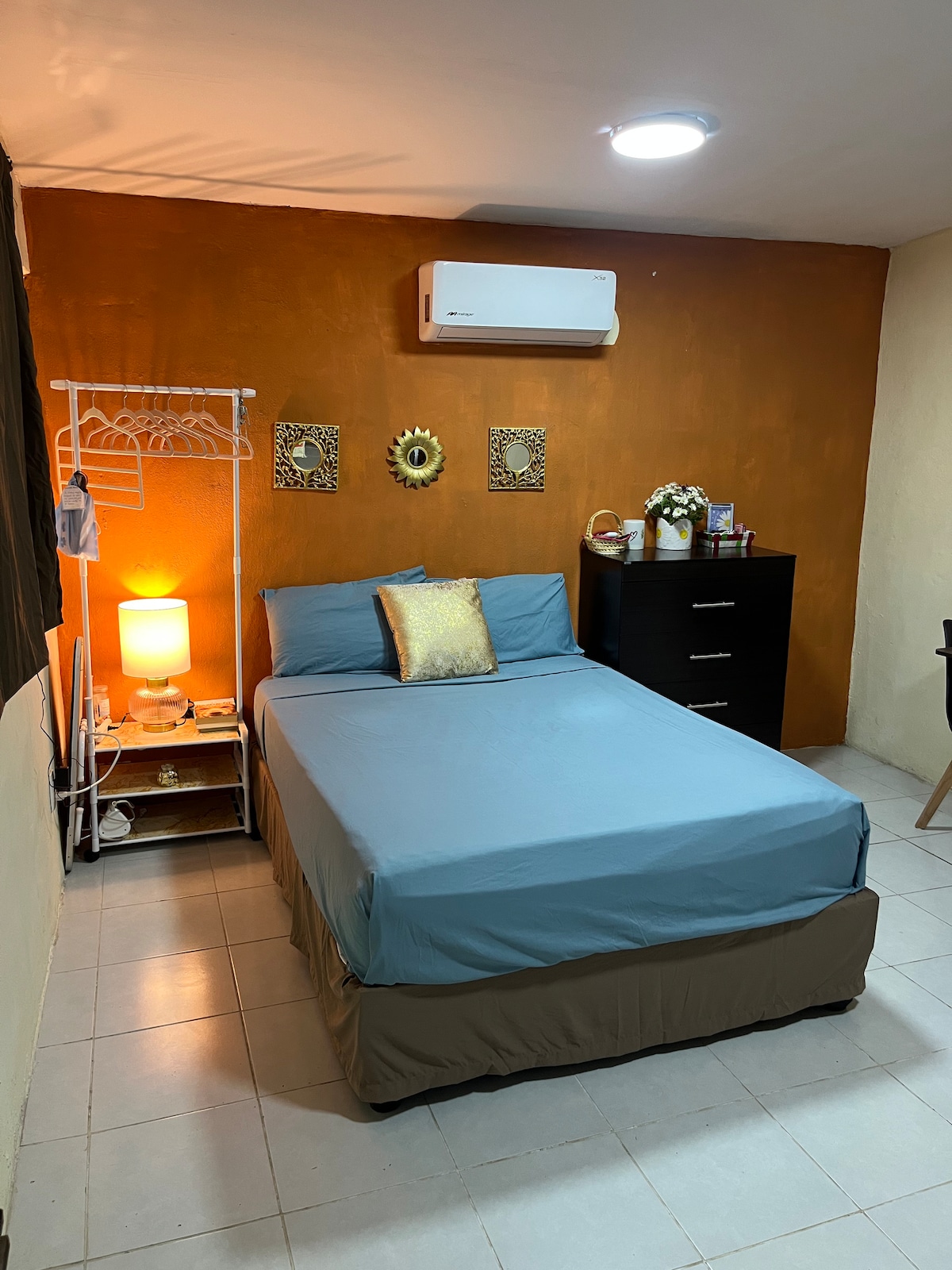 Apartamento ideal para dos personas con cama queen size , ,A/A .pantalla y baño propio.el.airnb cuenta con cocina y utensilios esta en segundo piso .únicamente de uso para los huéspedes .Excelente ubicación a 3 minutos del ADO y a 5 minutos de la Plaza “Las Américas”. Lonchería en planta baja con antojitos yucatecos de 4 a11 de la noche.