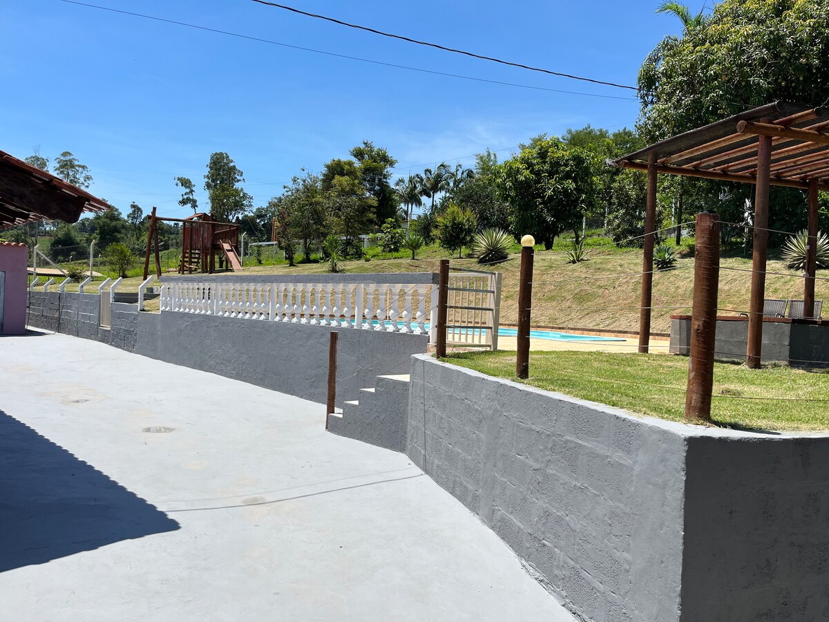Descubra a serenidade em nossa casa de campo, onde a tranquilidade se entrelaça com a natureza. Com amplos espaços verdes, um ambiente acolhedor e o canto suave dos pássaros, é o refúgio perfeito para sua família recarregar as energias e criar memórias inesquecíveis. Seja bem-vindo ao equilíbrio perfeito entre conforto e natureza, onde cada momento se transforma em um precioso capítulo da sua história familiar. 🌳🏡✨" Disfrute o ar puro da natureza, e a paz e tranquilidade do nosso espaço!