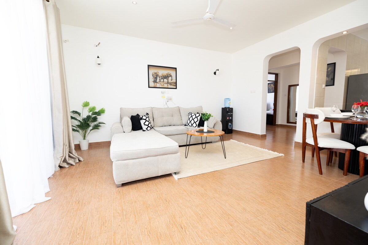 Moderno y decorado con buen gusto en el departamento de playa de 3 dormitorios en el primer piso. Relájate con tu familia en este hermoso y sereno apartamento a tiro de piedra de la impresionante playa de Galu. Ubicado en un complejo seguro y hermoso con una hermosa piscina y vislumbres de la playa desde la terraza. Pasea por la playa hasta los muchos restaurantes, bares, escuelas de buceo y kitesurf. Hay grandes chárter de pesca de juegos disponibles localmente.