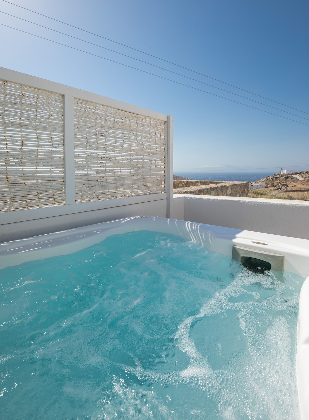 Suite Ammonite-Myconian con vistas al mar bañera de hidromasaje con vistas al mar