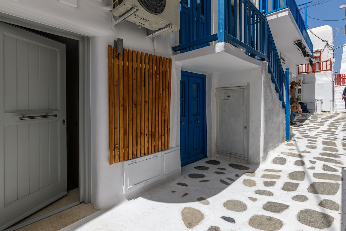 Un apartamento de dos pisos recientemente renovado ubicado en el corazón de la ciudad de Miconos con vistas al mar Egeo. Te ofrece los privilegios del centro con la tranquilidad de un barrio tranquilo.