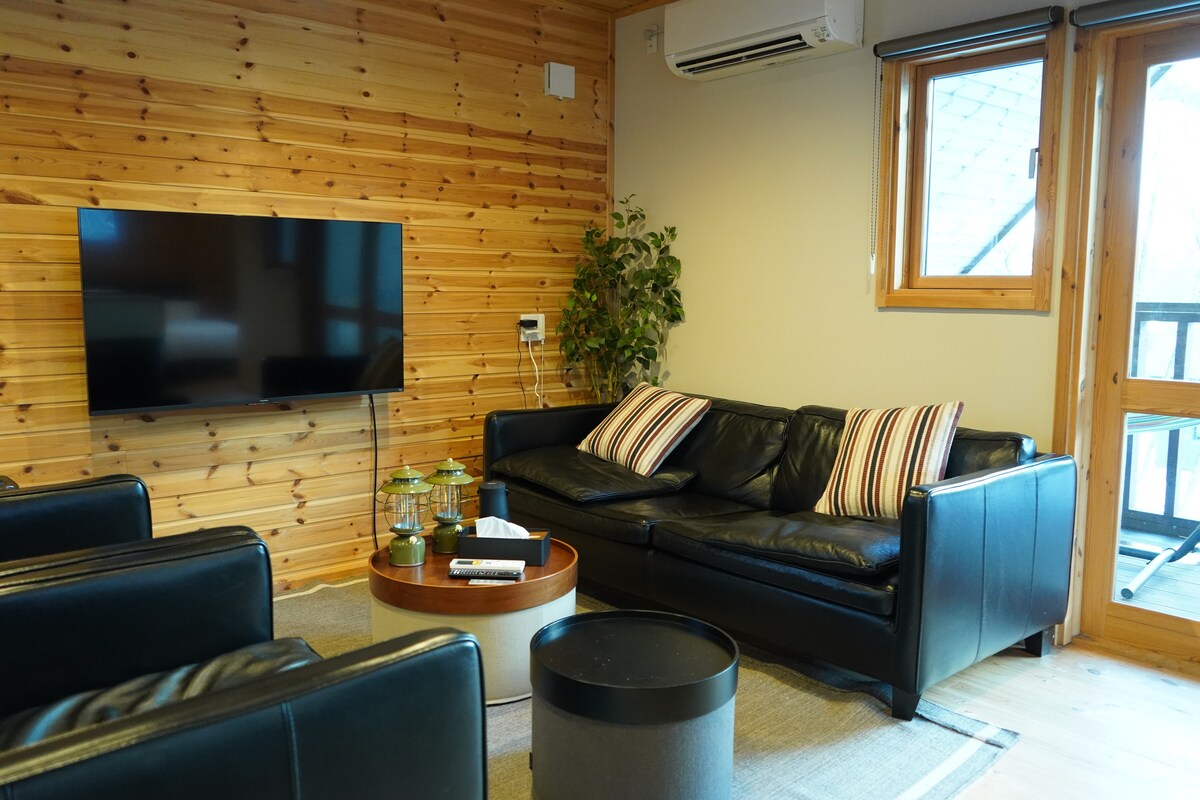 Cabaña 100% privada, con capacidad para un máximo de 14 personas (más un cargo gratuito para niños menores de 3 años/máximo 2 bebés) ◉Literalmente puedes ver la pendiente desde la cabaña. ◉¡Disfrute de las vistas panorámicas desde el balcón! Hay wifi◉ gratuito, altavoz Bluetooth de alta calidad, un proyector, juegos de mesa, juguetes y libros para que disfrutes de tus días de “salida de esquí”. Hay cupones de◉ descuento disponibles para áreas de esquí y tiendas de alquiler. -------------------------