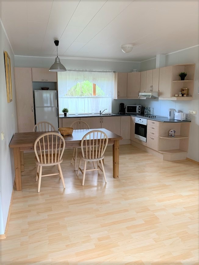 This is a cabin in a row of 4, each cottage only sleeps 2 persons, please respect that. Each cabin is 28 m2 and has private entrance. This cabin (C) has one bedroom, small open living, dining and kitchen area. There is a bathroom with a wc and a shower. There is a small kitchenette (stove and a fridge) and dining facility. There is wifi and TV. Please note that there are no amenities for infants but it is not possible to specify "no infants" in the criteria.