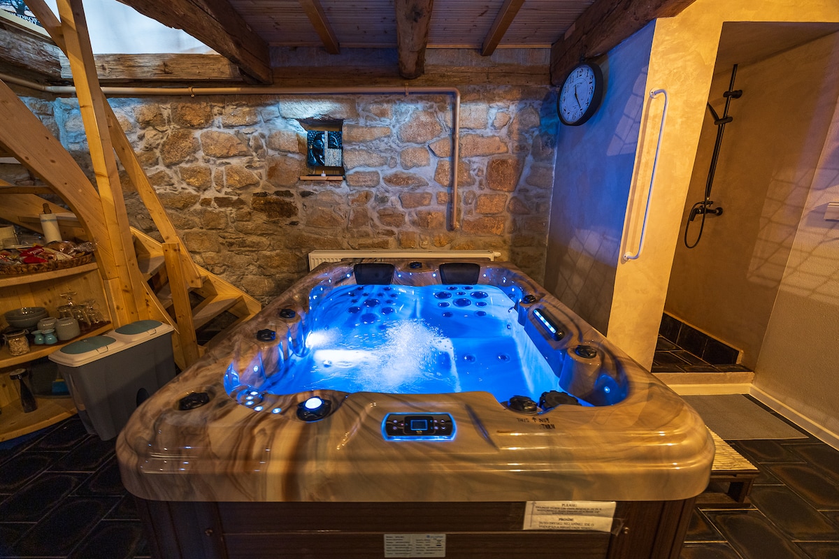 Escápate a una cabaña histórica renovada con buen gusto. Calienta en la sauna de leña y luego refréscate en un estanque natural. Disfruta del sonido de la cascada, el bosque y la naturaleza que te rodea. Relájate junto a la ventana con un fuego crepitante. Las comodidades de lujo incluyen un sistema de sonido Bowers & Wilkins, una cocina totalmente equipada con puertas de madera antiguas y un baño con suelo radiante y una ducha de efecto lluvia. Perfecto para una estancia romántica o para trabajar a distancia con un monitor Dell. A sólo 30 minutos de Praga.