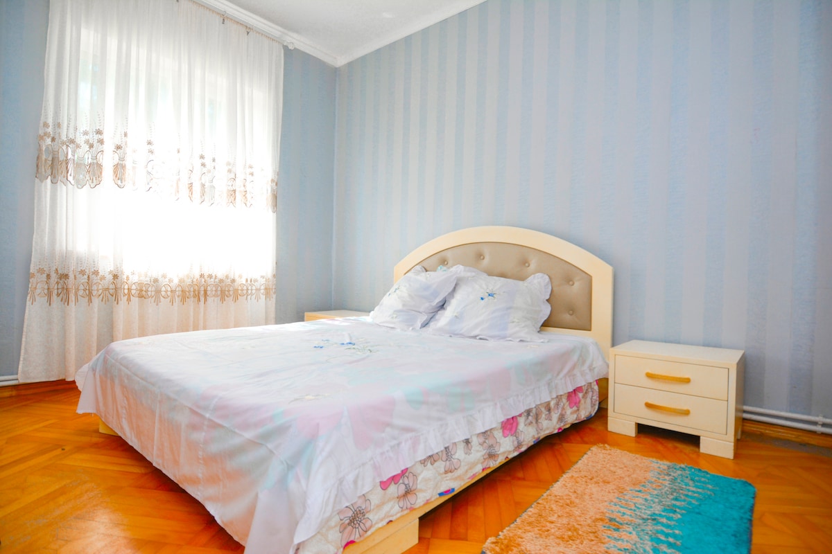 Nuestra acogedora casa es el lugar perfecto para aquellos que buscan soledad, aprecian cómodas restauraciones ecológicas, deliciosa comida casera y la belleza de la naturaleza de Georgia: • 2 dormitorios luminosos y acogedores, una sala de estar con un proyector y reproductor de vinilo, una pequeña cocina equipada y un baño con ventana. • Una piscina al aire libre, un jardín con deliciosas verduras y frutas; • Nosotros nos encargaremos de cocinar mientras disfrutas de magníficas puestas de sol y planificas tus aventuras en Georgia.